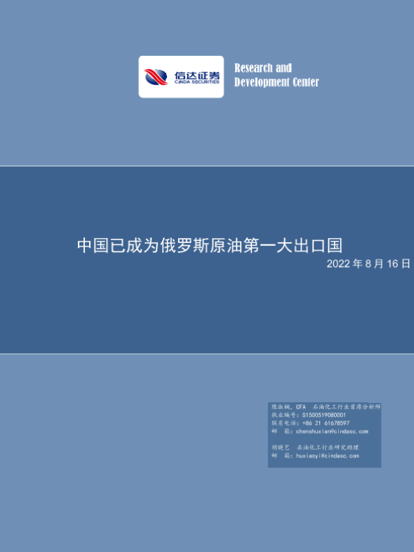 【信达证券】【20220816】中国已成为俄罗斯原油第一大出口国-10页