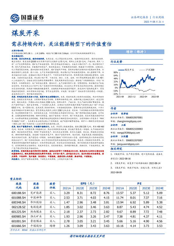 【国盛证券】【20220821】煤炭开采行业周报:需求持续向好,关注能源转型下的价值重估-19页