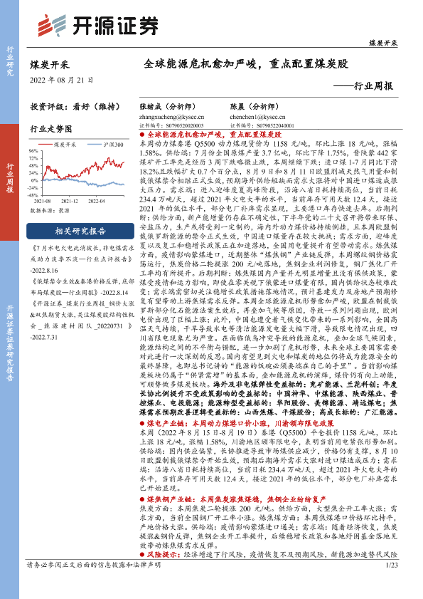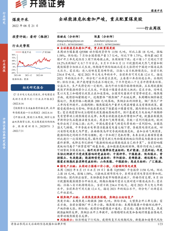 【开源证券】【20220821】20220821-开源证券-煤炭开采行业周报:全球能源危机愈加严峻,重点配置煤炭股-23页