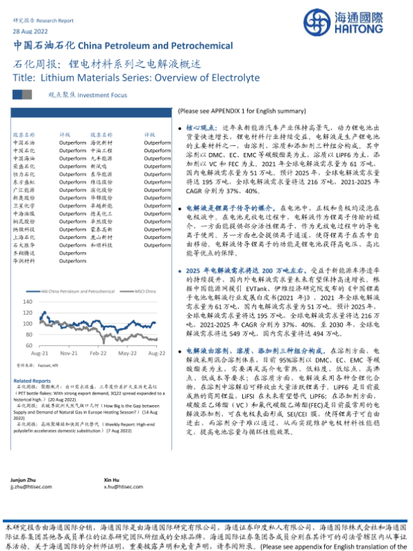 【海通国际】【20220828】石化周报:锂电材料系列之电解液概述-12页