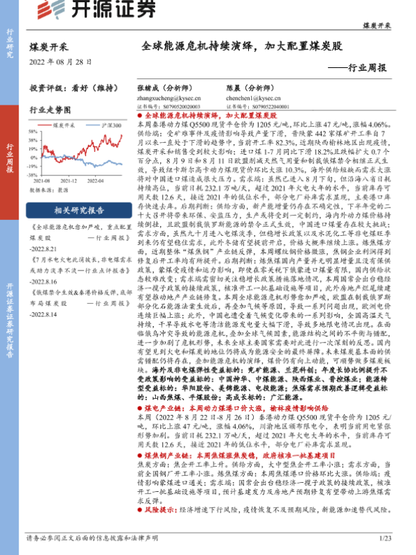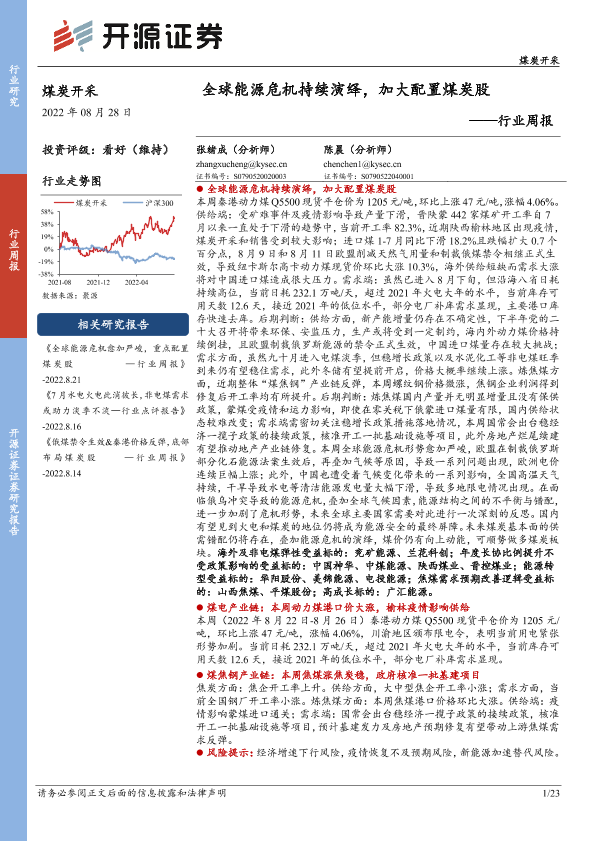 【开源证券】【20220828】20220828-开源证券-煤炭开采行业周报:全球能源危机持续演绎,加大配置煤炭股-23页