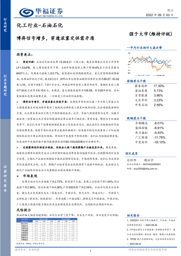 【华福证券】【20220903】化工行业-石油石化:博弈信号增多,穿透浓雾定供需矛盾-16页