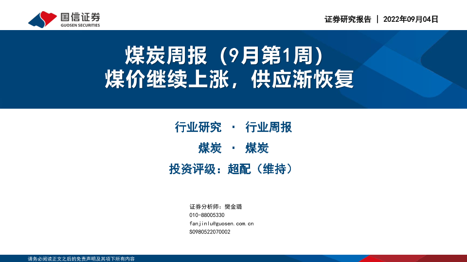 【国信证券】【20220904】20220904-国信证券-煤炭周报(9月第1周):煤价继续上涨,供应渐恢复-28页