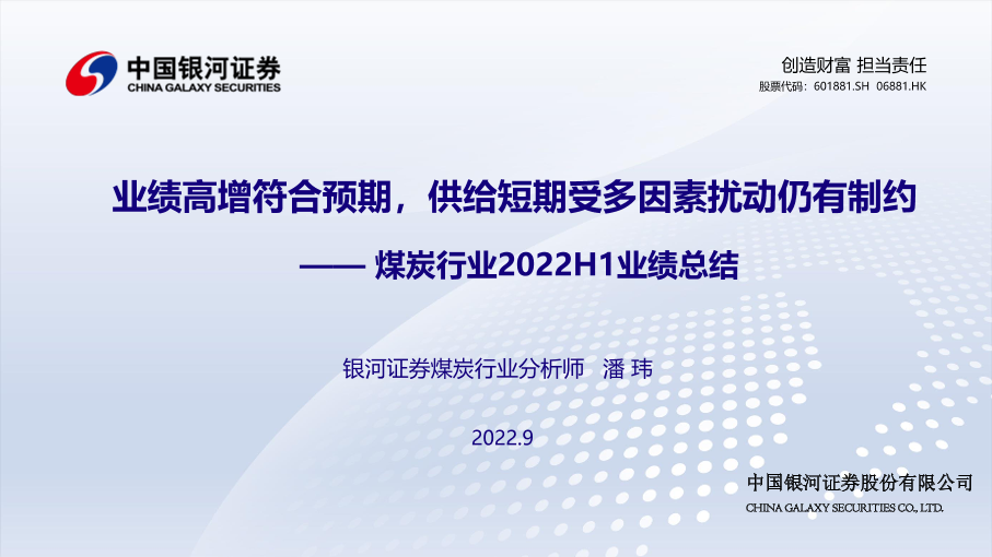 【银河证券】【202209】煤炭行业2022H1业绩总结:业绩高增符合预期,供给短期受多因素扰动仍有制约-21页