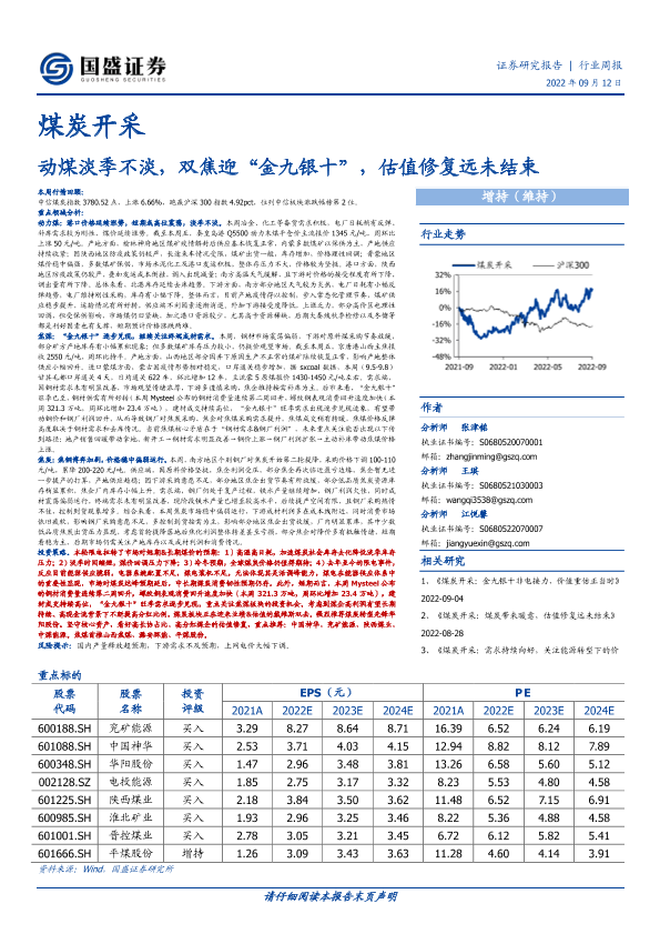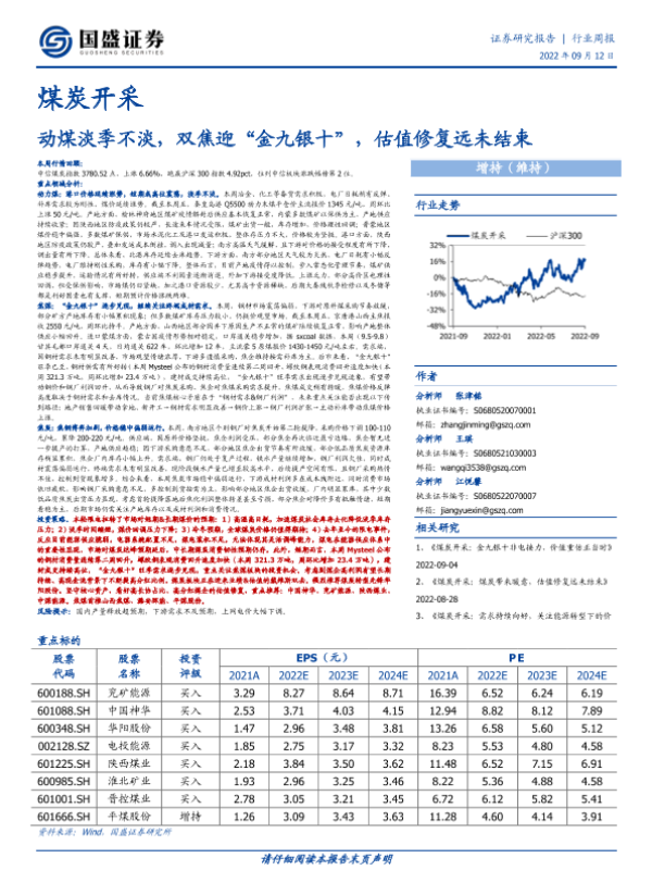 【国盛证券】【20220912】20220912-国盛证券-煤炭开采行业周报:动煤淡季不淡,双焦迎“金九银十”,估值修复远未结束-19页
