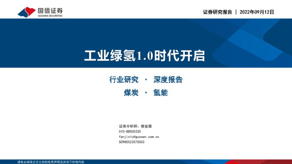 【国信证券】【20220912】煤炭行业深度报告:工业绿氢1.0时代开启-36页