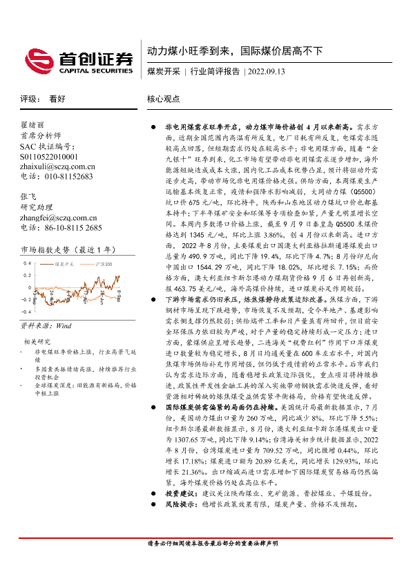 【首创证券】【20220913】20220913-首创证券-煤炭开采行业简评报告:动力煤小旺季到来,国际煤价居高不下-12页