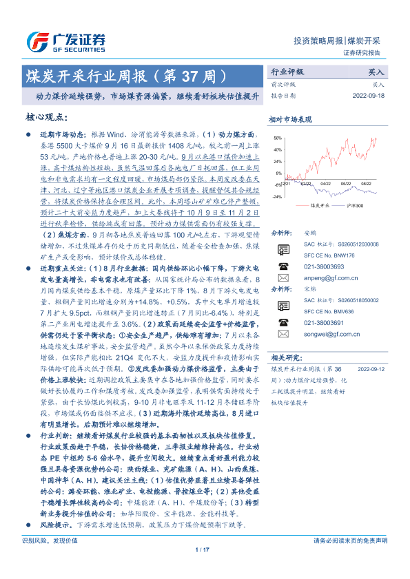 【广发证券】【20220918】20220918-广发证券-煤炭开采行业周报(第37周):动力煤价延续强势,市场煤资源偏紧,继续看好板块估值提升-17页