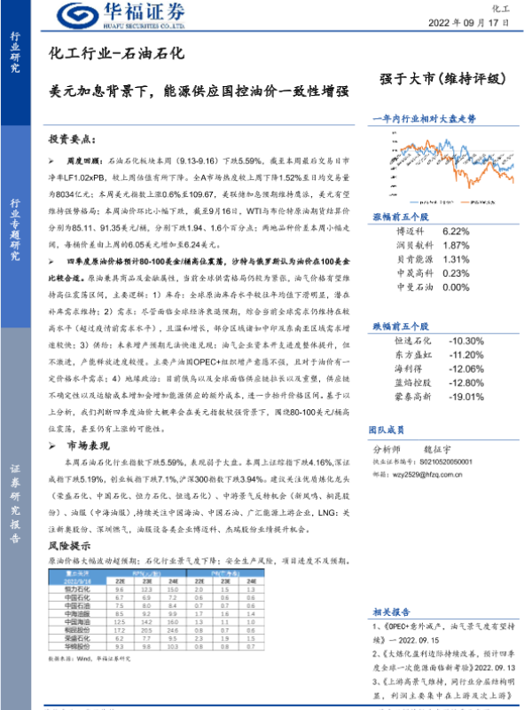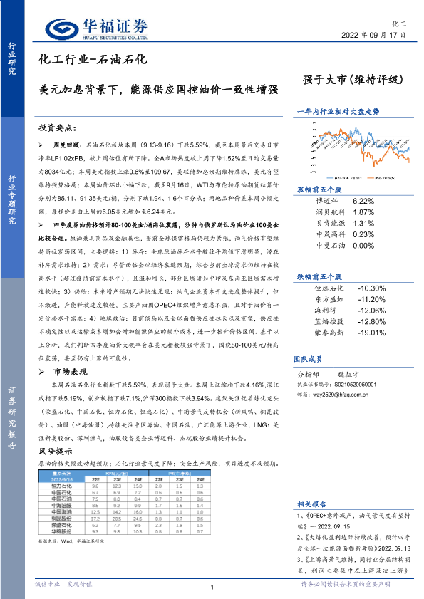 【华福证券】【20220917】20220917-华福证券-石油石化行业专题研究:美元加息背景下,能源供应国控油价一致性增强-17页