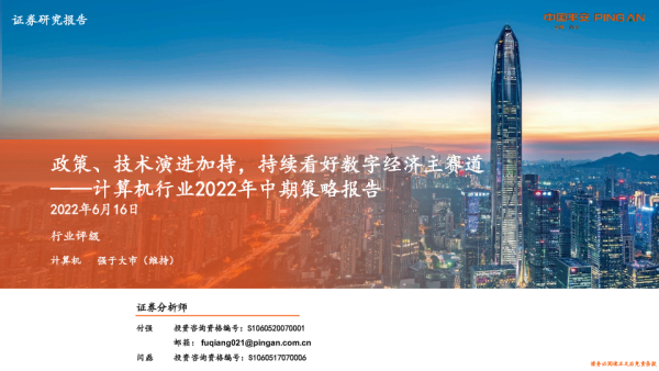 【平安证券】【20220616】计算机行业2022年中期策略报告:政策、技术演进加持,持续看好数字经济主赛道-43页