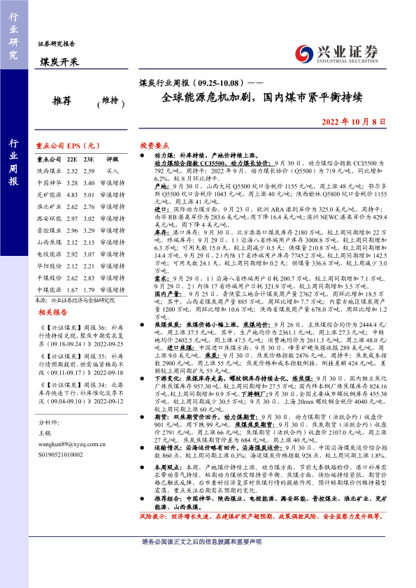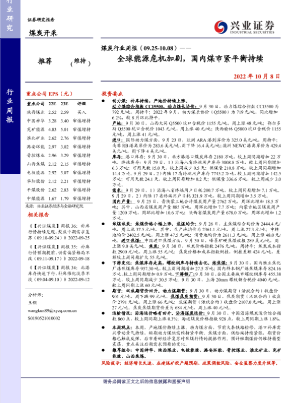 【兴业证券】【20221008】煤炭行业周报(09.25-10.08)——全球能源危机加剧,国内煤市紧平衡持续-12页