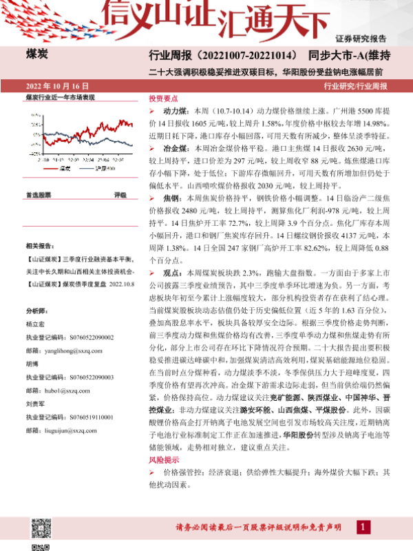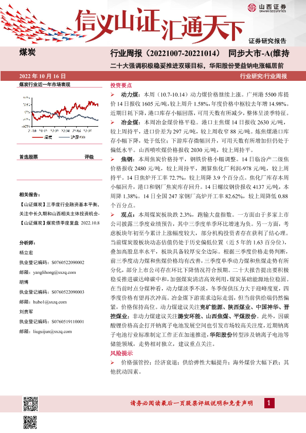 【山西证券】【20221016】20221016-山西证券-煤炭行业周报:二十大强调积极稳妥推进双碳目标,华阳股份受益钠电涨幅居前-21页