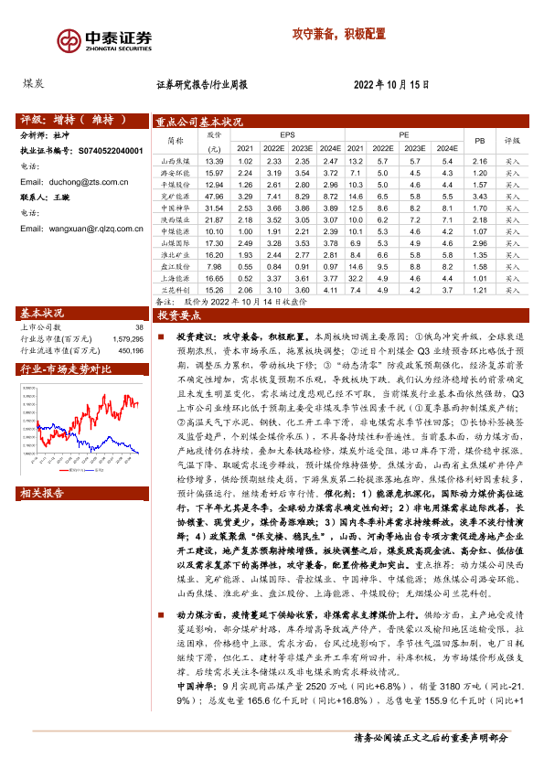 【中泰证券】【20221015】20221015-中泰证券-煤炭行业周报:攻守兼备,积极配置-25页