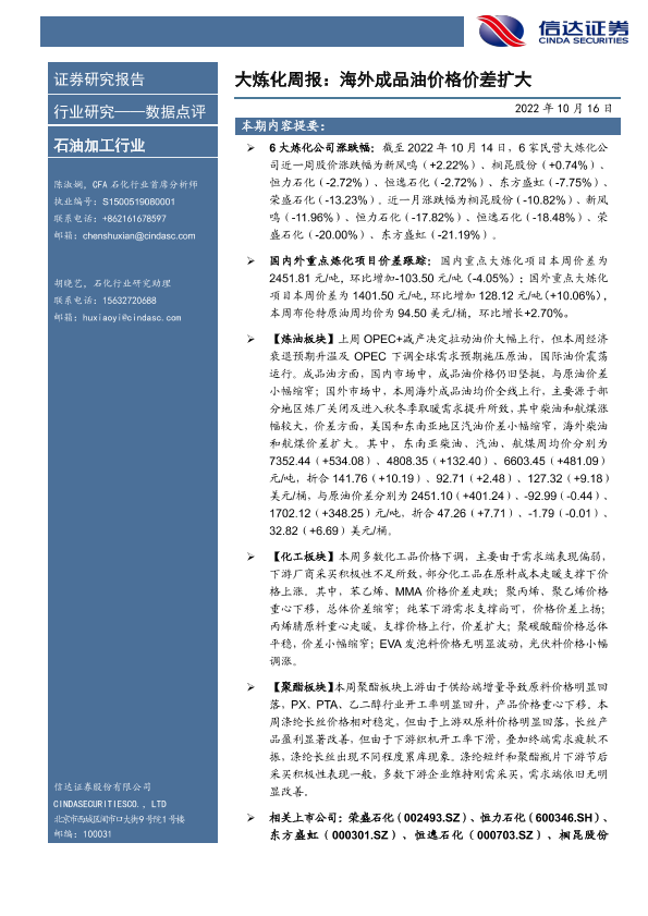 【信达证券】【20221016】大炼化周报:海外成品油价格价差扩大-21页
