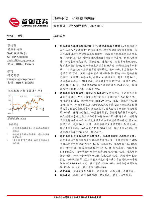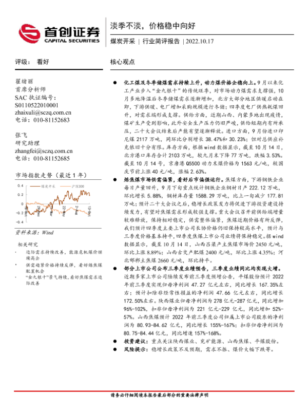 【首创证券】【20221017】20221017-首创证券-煤炭开采行业简评报告:淡季不淡,价格稳中向好-12页