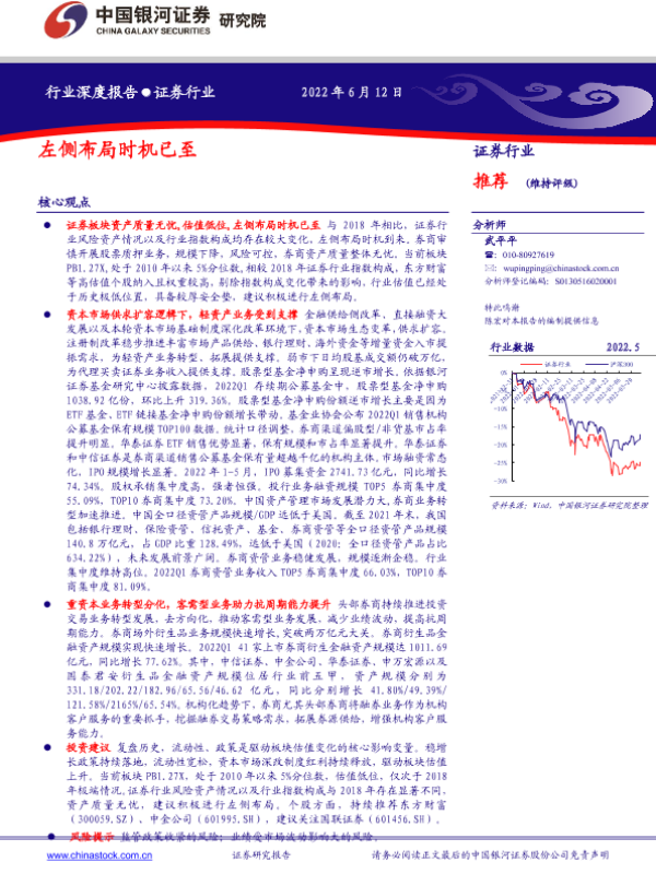 左侧布局 投资建议 证券行业 资本市场改革 风险管理