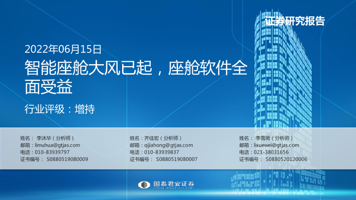 【国泰君安证券】【20220615】智能座舱大风已起,座舱软件全面受益-98页