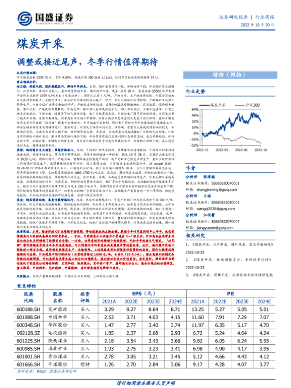 【国盛证券】【20221030】20221030-国盛证券-煤炭开采行业周报:调整或接近尾声,冬季行情值得期待-21页