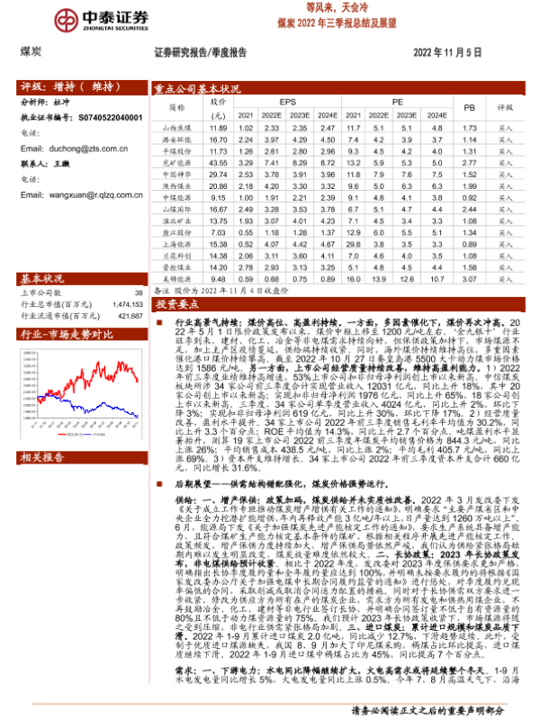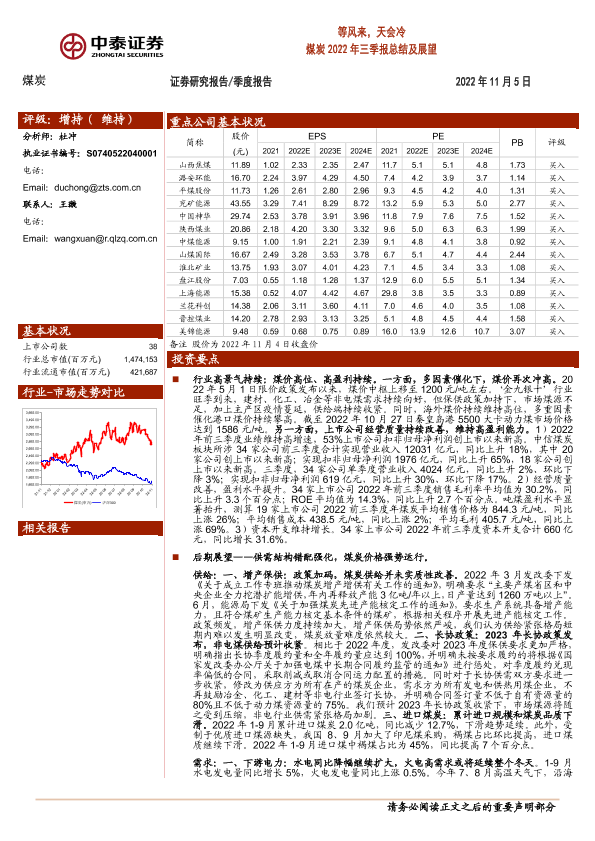 【中泰证券】【20221105】等风来,天会冷 煤炭2022年三季报总结及展望-31页