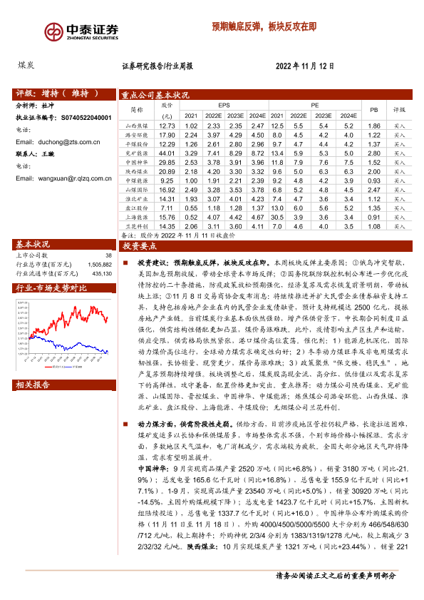 【中泰证券】【20221112】20221112-中泰证券-煤炭行业周报:预期触底反弹,板块反攻在即-26页