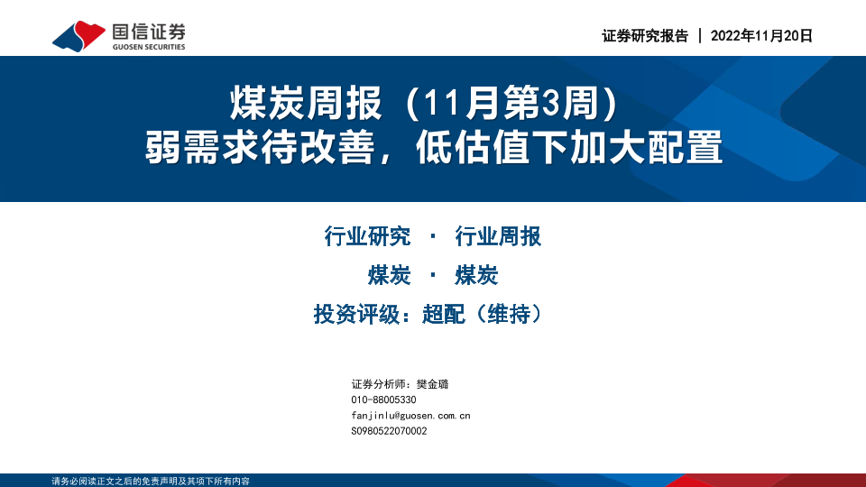【国信证券】【20221120】20221120-国信证券-煤炭周报(11月第3周):弱需求待改善,低估值下加大配置-28页