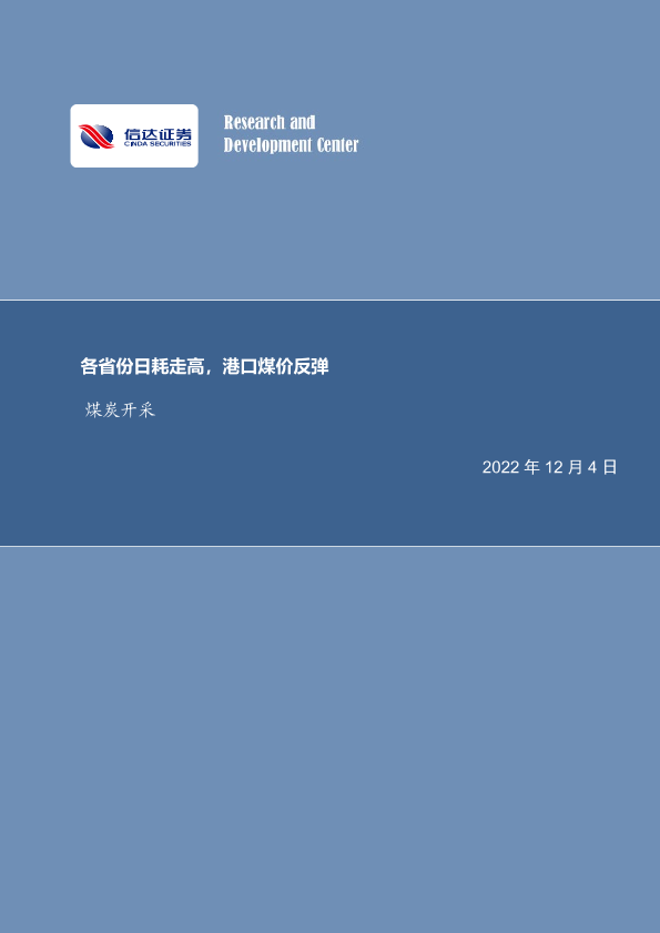 【信达证券】【20221204】20221204-信达证券-煤炭开采行业周报:各省份日耗走高,港口煤价反弹-27页