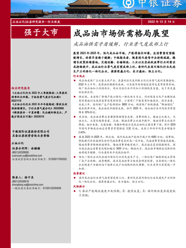 【中银证券】【20221214】成品油市场供需格局展望:成品油供需矛盾缓解,行业景气度底部上行-35页