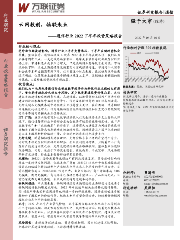【万联证券】【20220610】通信行业2022下半年投资策略报告:云网数创,物联未来-43页
