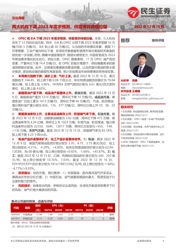 【民生证券】【20221218】20221218-民生证券-石化周报:两大机构下调2023年需求预测,供需博弈持续拉锯-29页