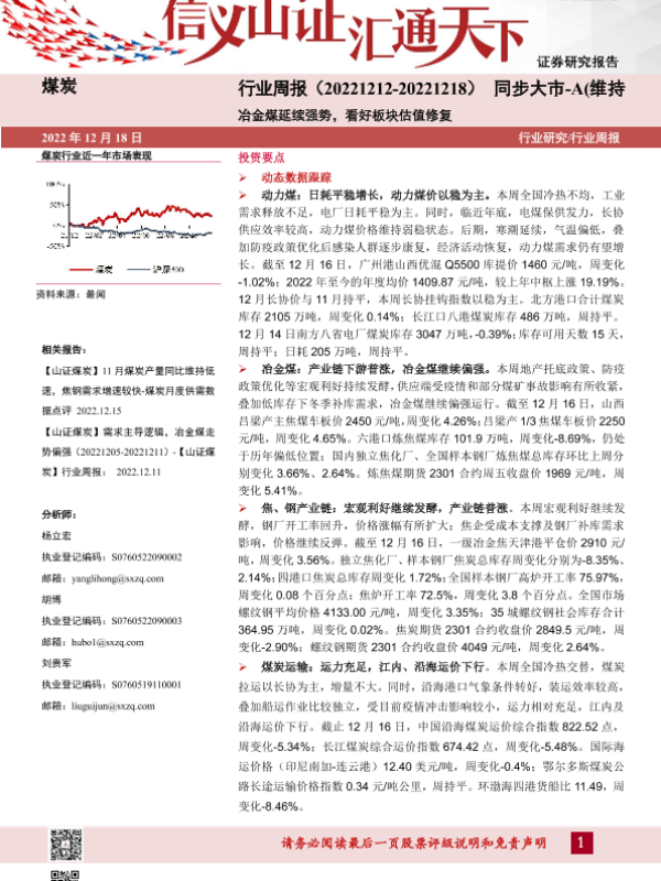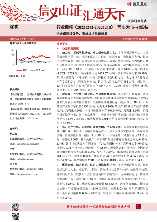 【山西证券】【20221218】煤炭行业周报:冶金煤延续强势,看好板块估值修复-18页