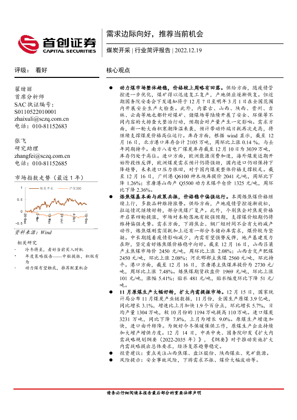 【首创证券】【20221219】20221219-首创证券-煤炭开采行业简评报告:需求边际向好,推荐当前机会-13页
