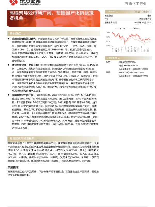 【东方证券】【20221223】20221223-东方证券-石油化工行业深度报告:高端聚烯烃市场广阔,把握国产化阶段投资机会-18页