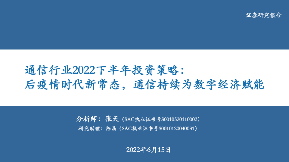 【华安证券】【20220615】通信行业2022下半年投资策略:后疫情时代新常态,通信持续为数字经济赋能-38页