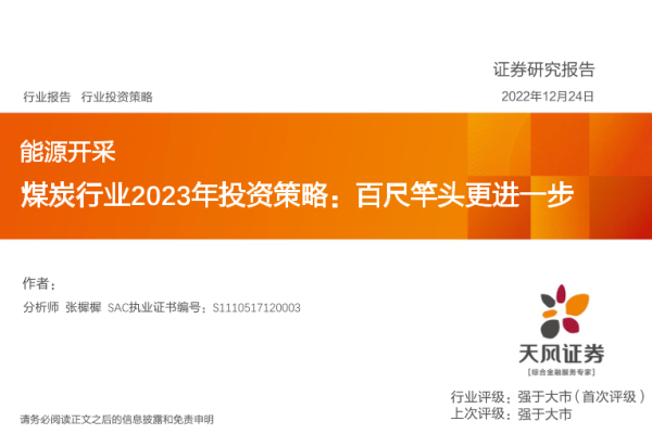 【天风证券】【20221224】煤炭行业2023年投资策略:百尺竿头更进一步-33页