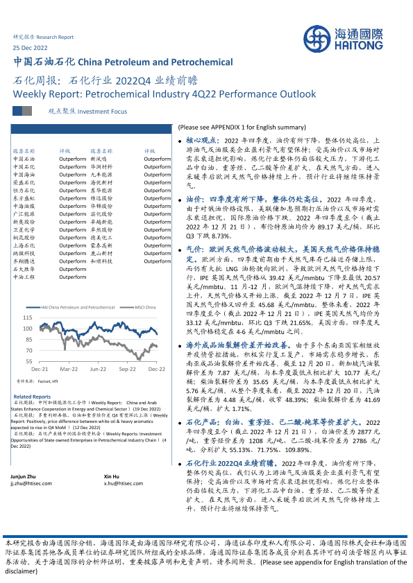 【海通国际】【20221225】石化周报:石化行业2022Q4业绩前瞻-12页