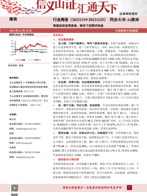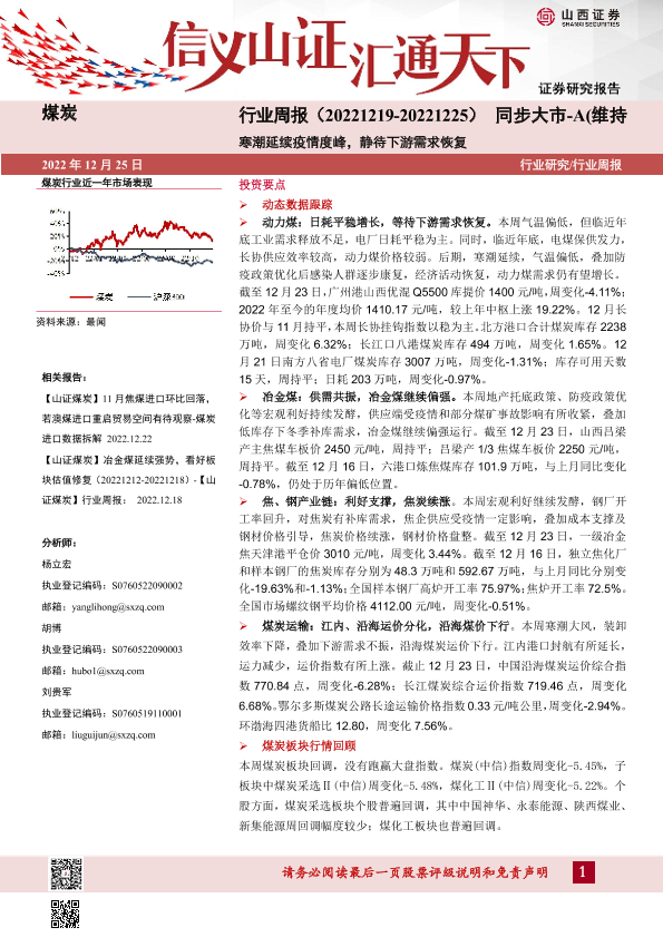 【山西证券】【20221225】煤炭行业周报:寒潮延续疫情度峰,静待下游需求恢复-18页