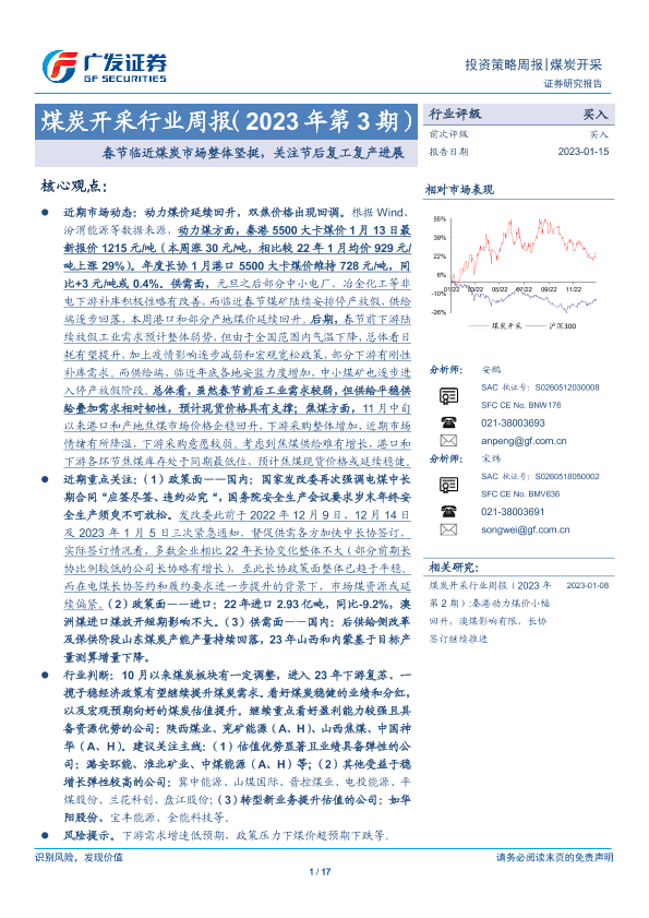 【广发证券】【20230115】20230115-广发证券-煤炭开采行业周报(2023年第3期):春节临近煤炭市场整体坚挺,关注节后复工复产进展-17页