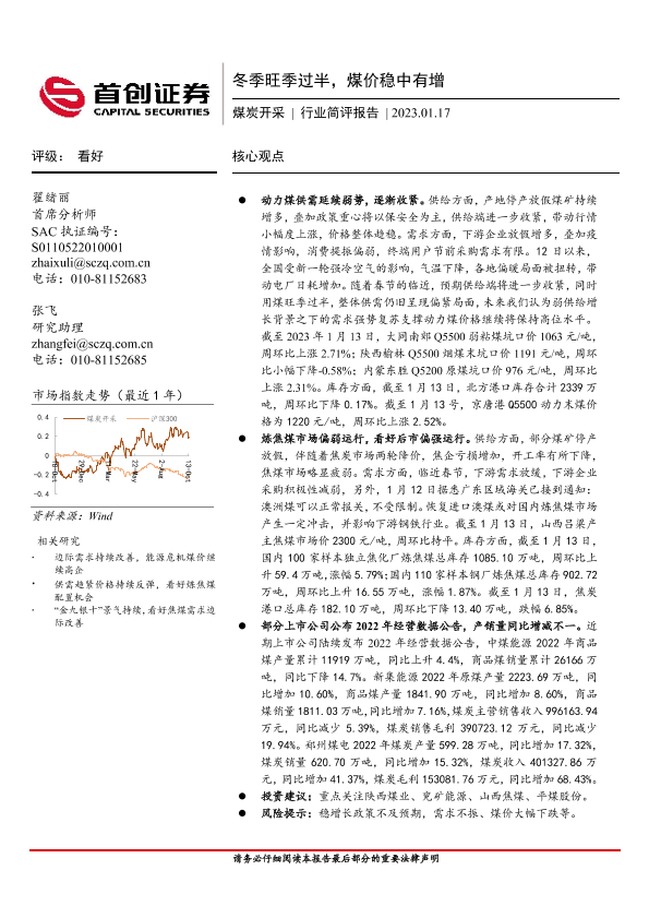 【首创证券】【20230117】20230117-首创证券-煤炭开采行业简评报告:冬季旺季过半,煤价稳中有增-13页