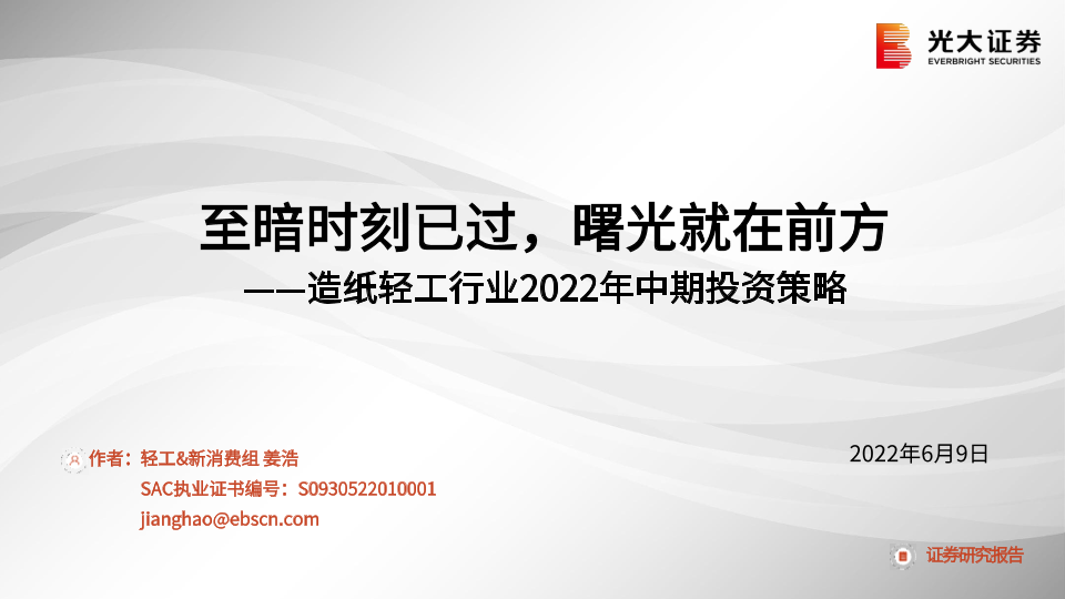 【光大证券】【20220609】造纸轻工行业2022年中期投资策略:至暗时刻已过,曙光就在前方-50页