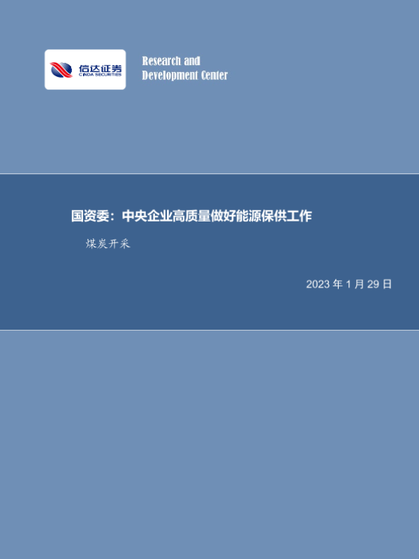 【信达证券】【20230129】国资委:中央企业高质量做好能源保供工作-27页