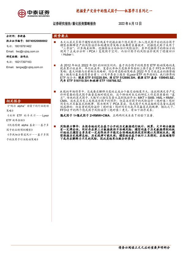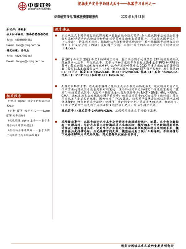 【中泰证券】【20220613】量化投资策略报告:机器学习系列之一,挖掘资产定价中的隐式因子-28页