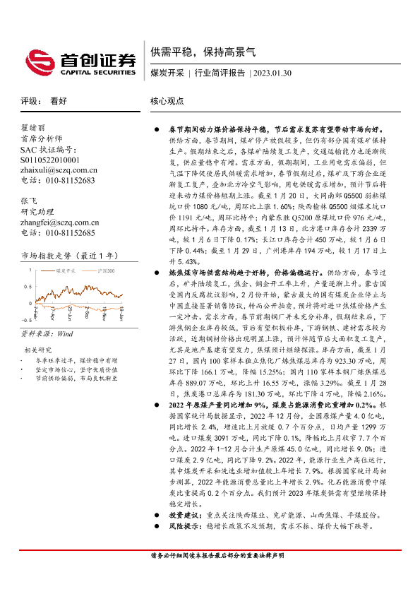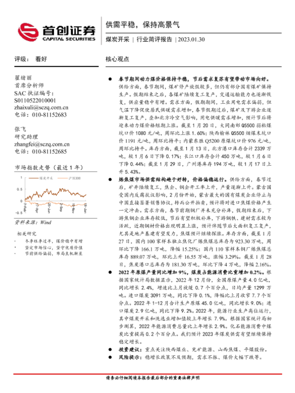 【首创证券】【20230130】20230130-首创证券-煤炭开采行业简评报告:供需平稳,保持高景气-12页