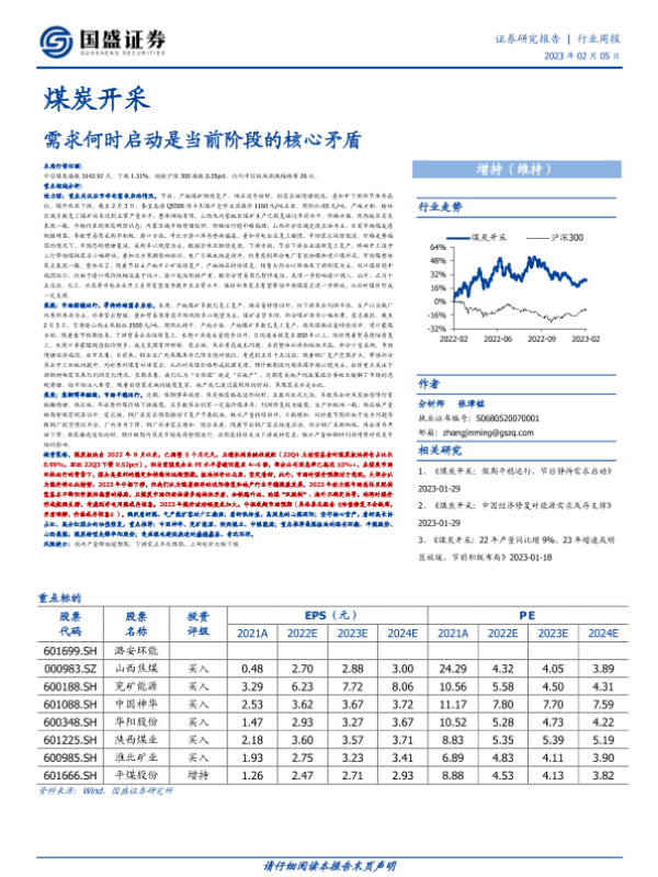 【国盛证券】【20230205】20230205-国盛证券-煤炭开采行业周报:需求何时启动是当前阶段的核心矛盾-21页