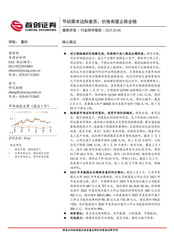【首创证券】【20230206】20230206-首创证券-煤炭开采行业简评报告:节后需求边际复苏,价格有望止跌企稳-13页