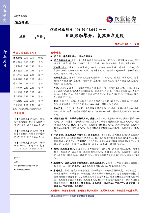 【兴业证券】【20230205】20230205-兴业证券-煤炭行业周报:日耗启动攀升,复苏正在兑现-12页