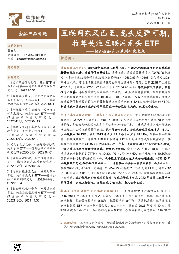【德邦证券】【20220616】金融产品系列研究之九:互联网东风已至,龙头反弹可期,推荐关注互联网龙头ETF-21页