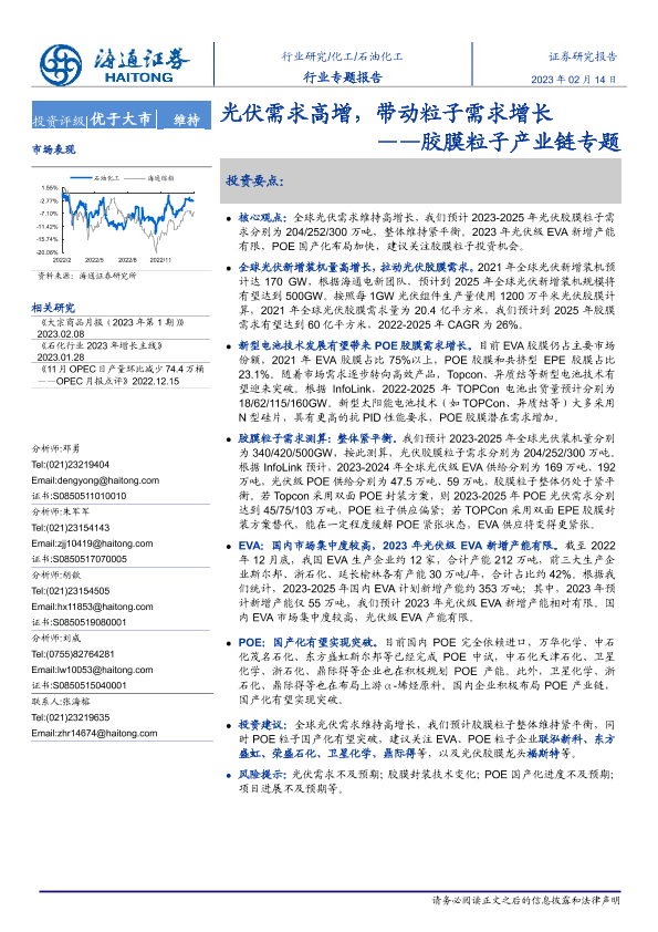 【海通证券】【20230214】20230214-海通证券-石油化工行业专题报告:胶膜粒子产业链专题-光伏需求高增,带动粒子需求增长-33页