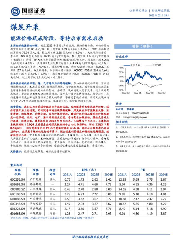 【国盛证券】【20230219】煤炭开采:能源价格筑底阶段,等待后市需求启动-13页