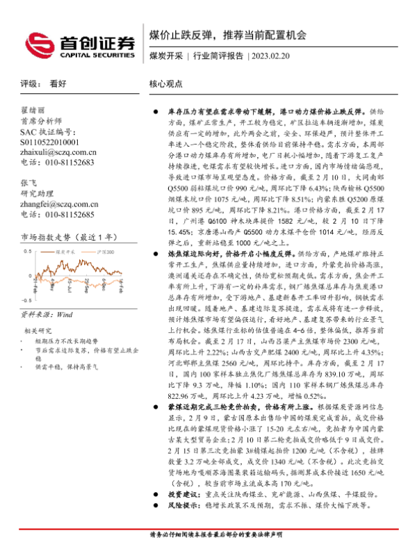 【首创证券】【20230220】20230220-首创证券-煤炭开采行业简评报告:煤价止跌反弹,推荐当前配置机会-13页
