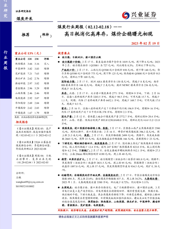 【兴业证券】【20230219】20230219-兴业证券-煤炭行业周报:高日耗消化高库存,煤价企稳曙光初现-12页